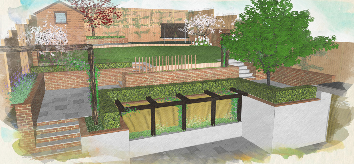 Garden renovation design, 3D modelling and visualisations, in collaboration with Andrew Wenham, LA.